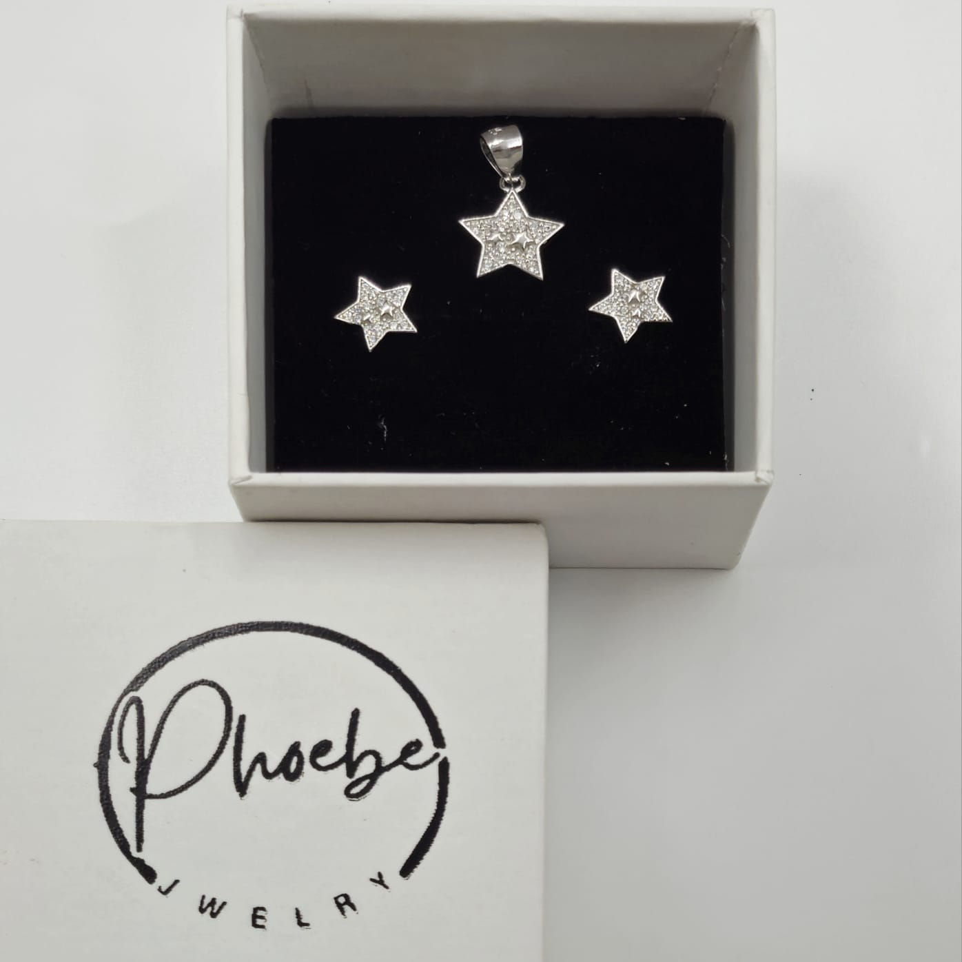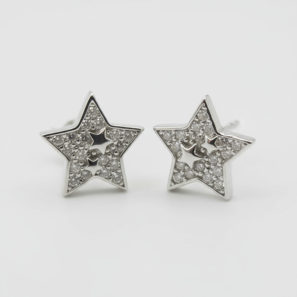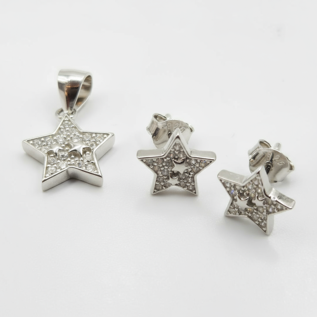 Each piece is adorned with fine cubic zircon stones for a glittering finish, and the openwork star accents in the center add a delicate, celestial touch. The overall look is modern, playful, and perfect for adding a bit of starlight shimmer to any outfit.