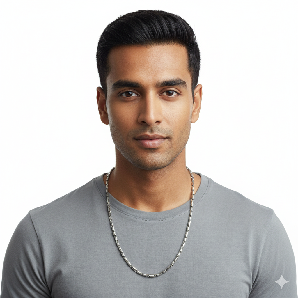 Introducing a masterfully crafted 925 sterling silver chain that perfectly balances sleek design with intricate detail. This piece is defined by its unique, alternating pattern of links, creating a look that is both modern and timeless.